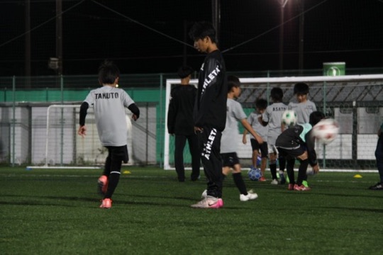 近江高校サッカー部員が最大8名。小学生にとって身近な目標となる存在です。
